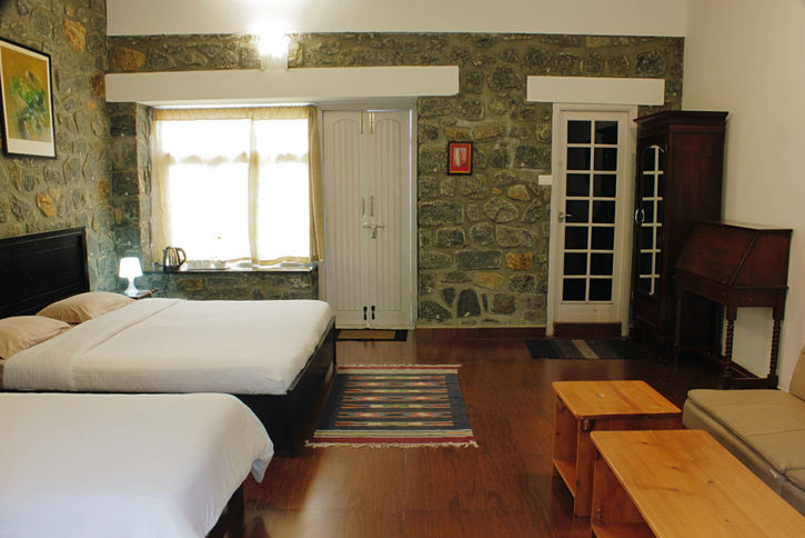 ROOMS 1 - 4: Our Deluxe Double Occupancy rooms are perfect for 2 people with a provision of an extra bed. These rooms overlook a beautiful valley with pear orchards and other farms. The rooms come fully equipped with Hot water kettle, Geysers, Room heaters and a safe.